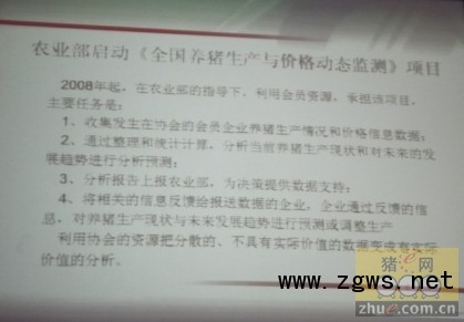2012年9月9日第十届(2012)中国猪业发展大会下午, 中国畜牧业协会猪业分会副会长荆继忠做了《全国养猪生产及价格动态监测项目的实施》的报告。